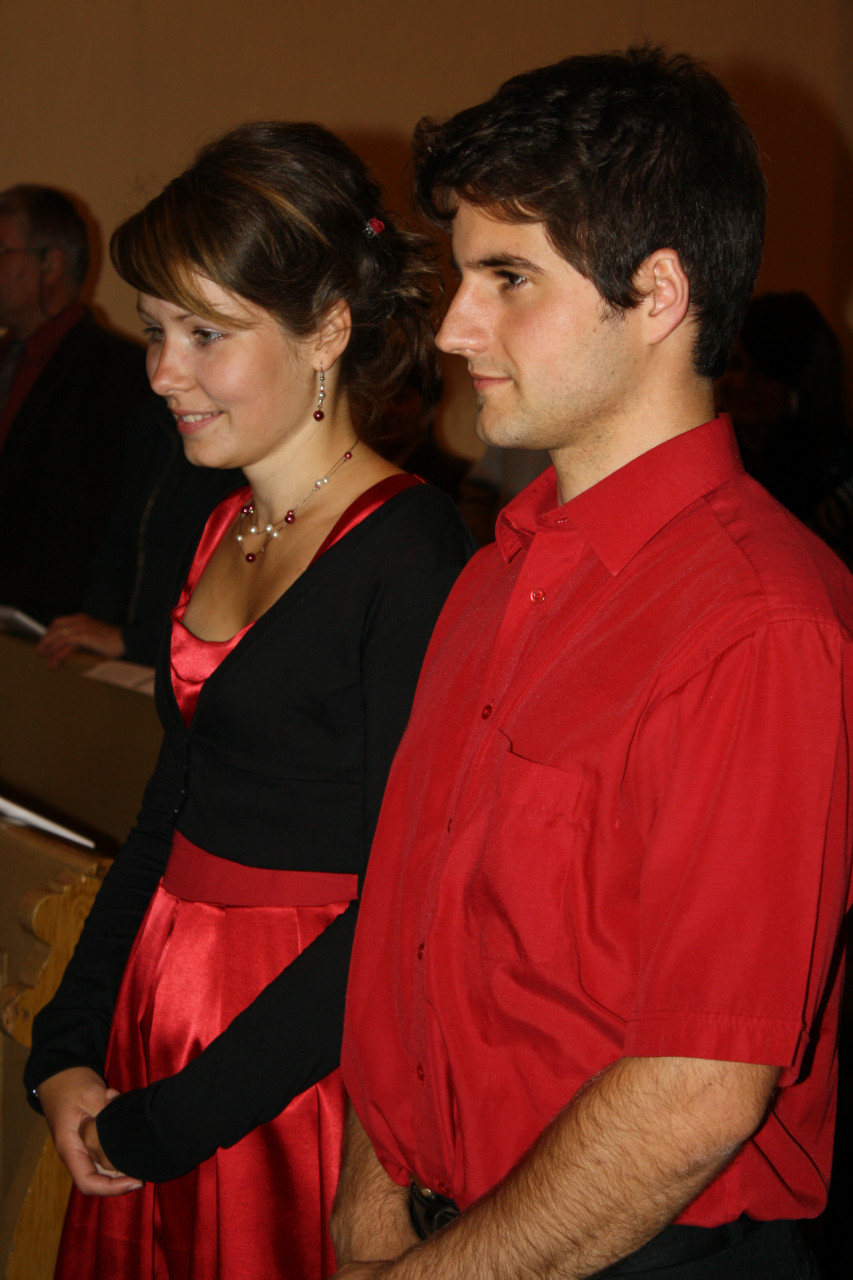 Já jsem se moc těšila na nedělní mši s jejich doprovodem, slyšela jsem je hrát na diecézku a jejich písničky mi stále zněly v uších. A hlavní důvod, proč jsem nemohla dospat do neděle? V sobotu jsme měli vycházku po Rychnově, která končila v kostele, kde už začaly přípravy na neděli... a když jsem viděla Péťu, jak stojí vpředu, všichni ho poslouchají a jak krásně hrají... no, kdo by se do něj nezamiloval?! :-) Víkend byl moc krásný, ale jak to už v životě bývá, přišlo loučení ... Nasedli do auta, mávali z oteveného okénka, které jim nešlo zavřít :-) a já náhle zůstala před farou sama a v tu chvíli jsem si řekla: "Jo, tak tenhle kluk mi bude chybět..."